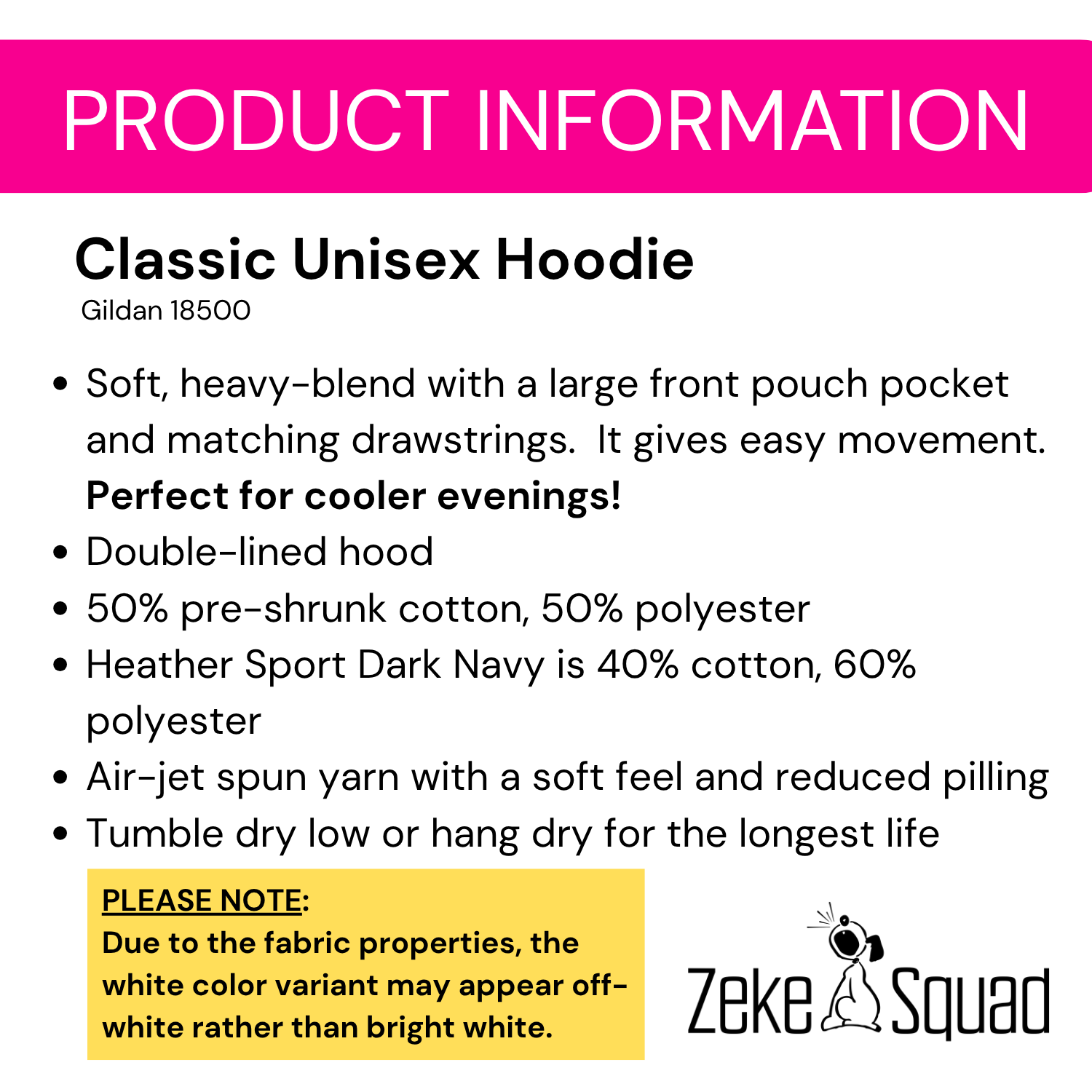 This unisex hoodie is for the ones who know there’s not a single thing in life that can’t be improved by fur, loyalty, and a cold nose nudging your arm. It’s soft, simple, and the kind of cozy that feels like comfort food for your nervous system.